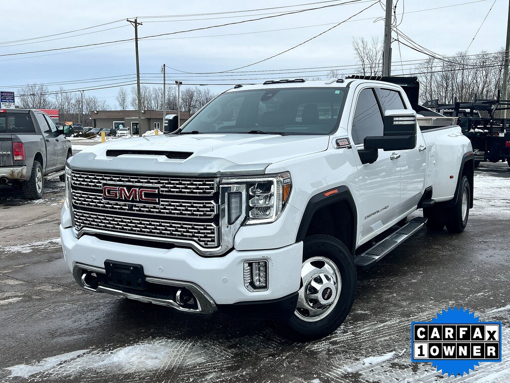 Experience top-tier luxury, power, and capability in this 2023 GMC Sierra 3500HD Denali Crew Cab 4WD, now available at Hillsdale Chrysler Dodge Jeep Ram. This one-owner heavy-duty truck features dual rear wheels and the powerhouse 6.6-liter Duramax® turbo diesel engine, delivering exceptional towing strength, durability, and performance. Recently fully inspected and professionally detailed, it's ready for the toughest jobs and the longest trips.